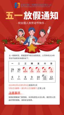 根據國家法定節(jié)假日安排及公司實際情況,現將2023年五一勞動節(jié)放假事宜通知如下:一、放假時間本次放假時間為2023年4月29日(星期六)至5月3日(星期三)放假調休,共5天。4月23日(星期日)、5月6日(星期六)上班。請各位員工提前做好工作安排,確保放假期間各項工作能夠順利交接。